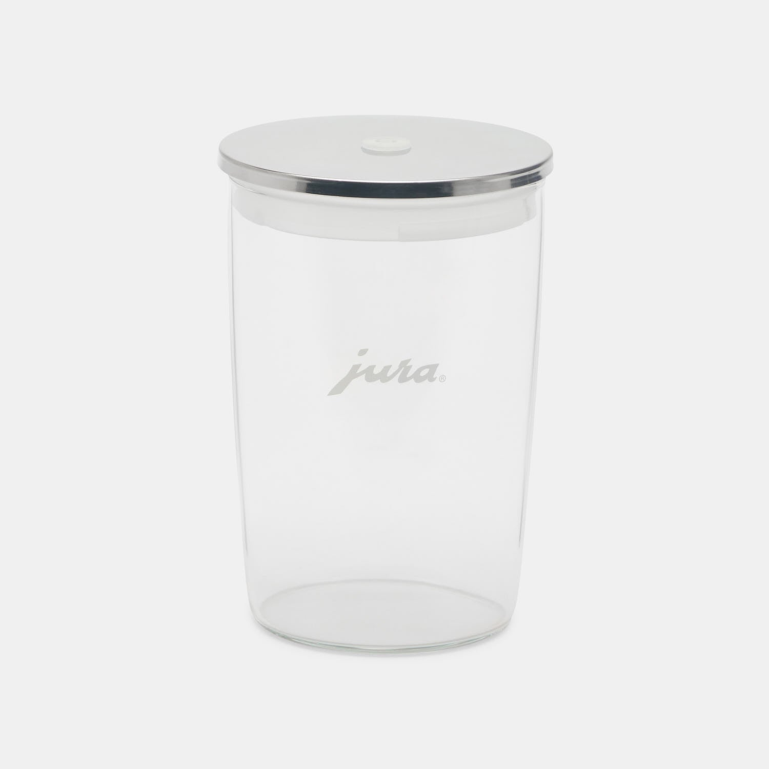 Contenant en verre pour machine espresso Jura. L'accessoire idéale pour faciliter l'utilisation du cappuccinateur Jura. Simplement le remettre au réfrigérateur une fois votre boissno terminée !