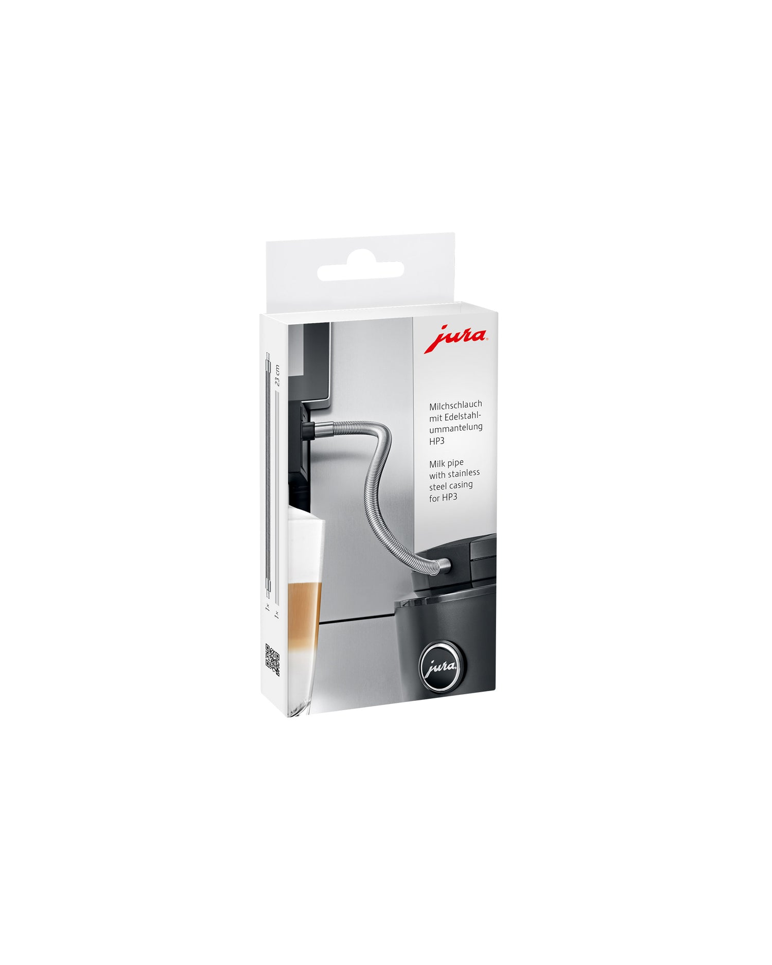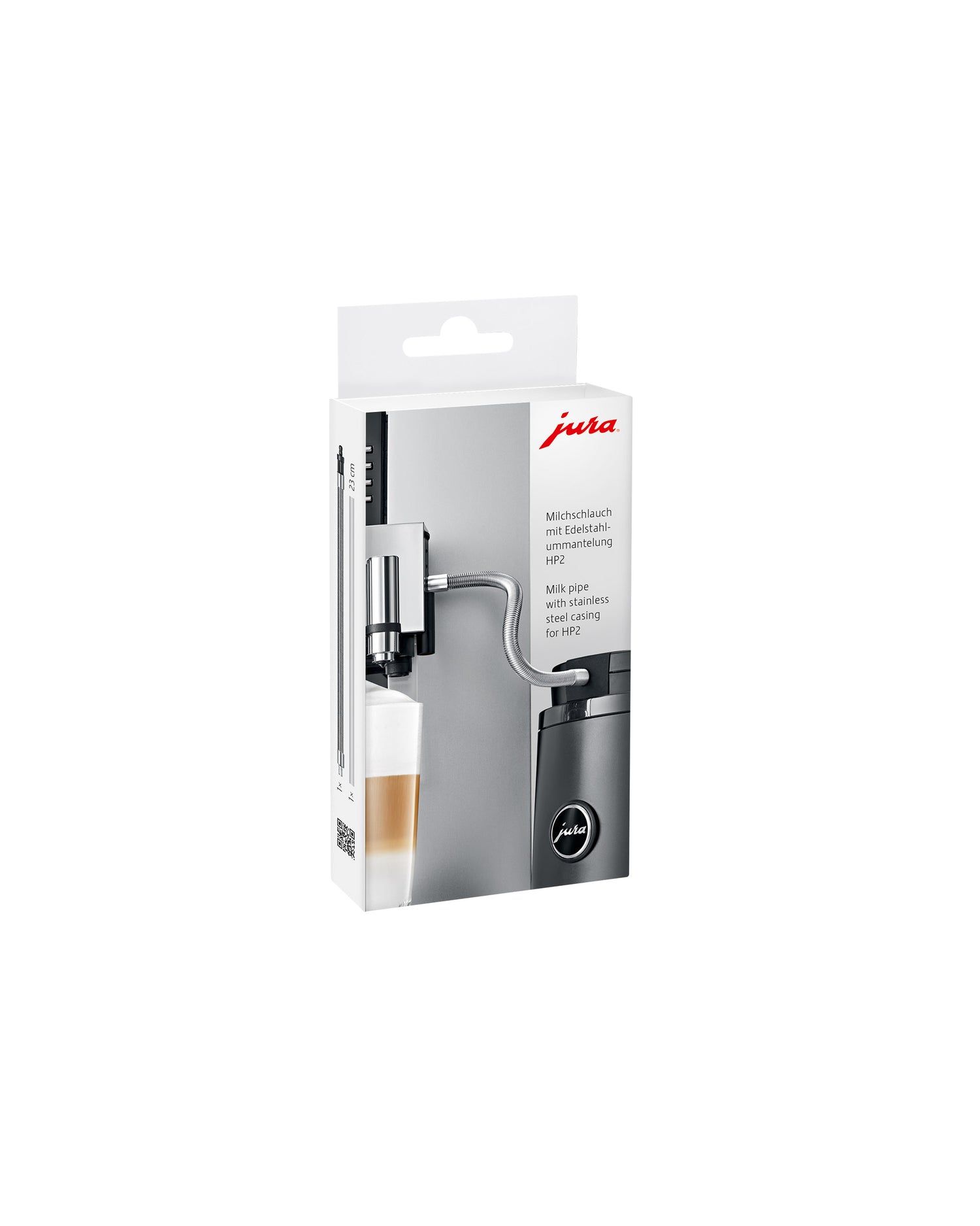Ce tuyau de lait serti d’un ressort hélicoïdal en inox haute qualité relie le récipient à lait à l’écoulement de lait et parachève ainsi le design raffiné de votre machine à café.