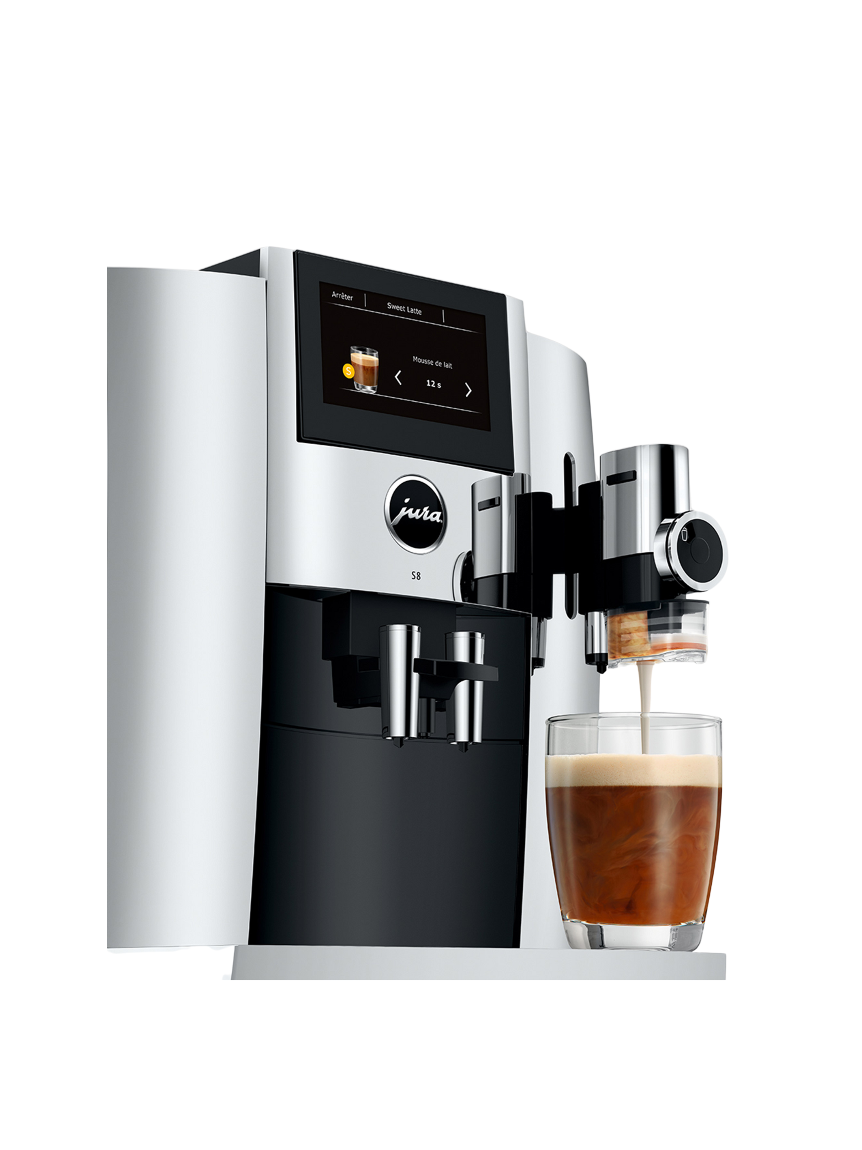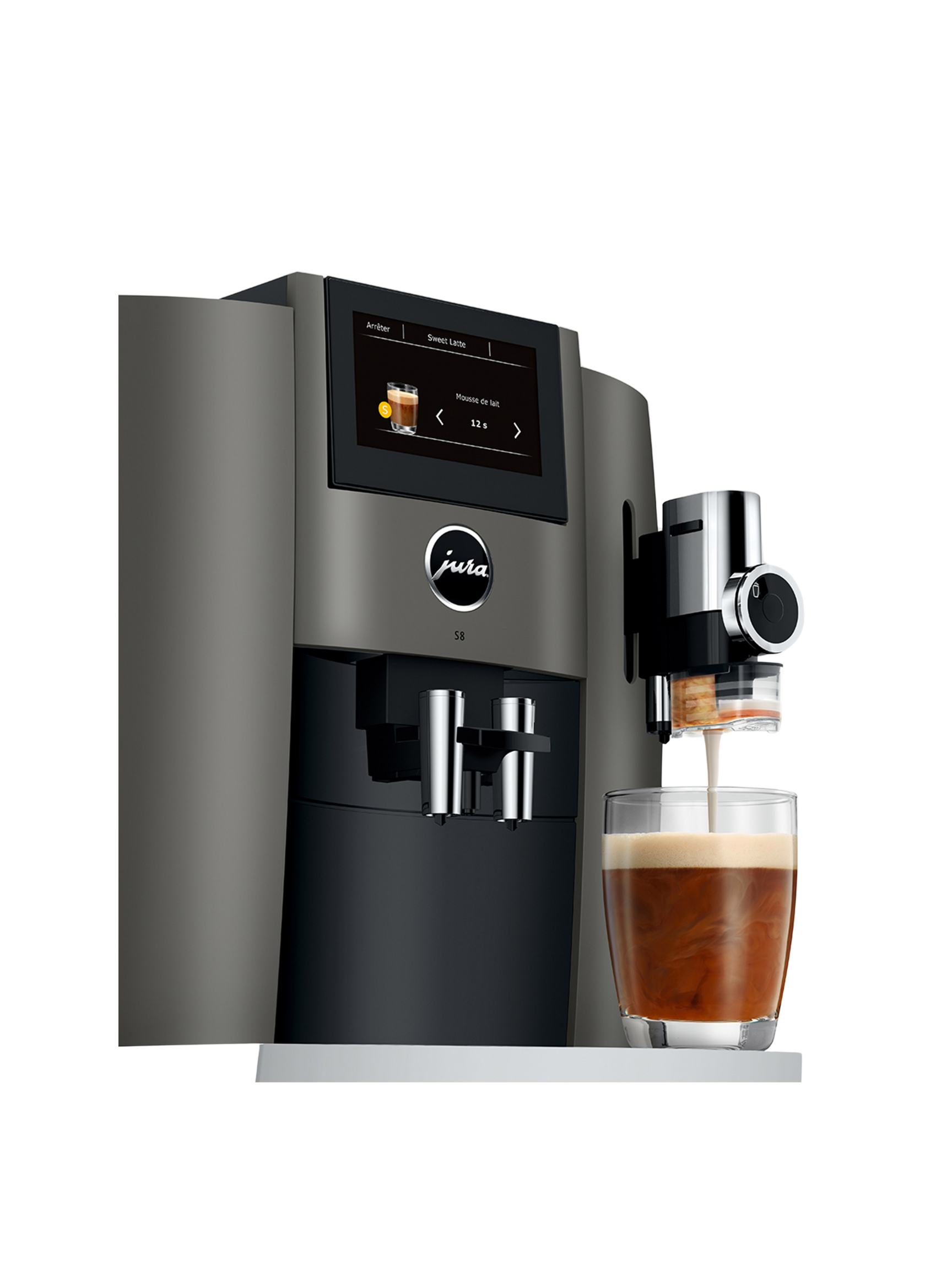 Offrez-vous le luxe d’un café parfait à chaque tasse avec la JURA S8, une machine automatique haut de gamme conçue en Suisse. Mariant un design raffiné à une technologie de pointe, la S8 transforme votre cuisine en véritable café-bar. Grâce à son écran tactile intuitif, ses nombreuses boissons personnalisables et son système de mousse de lait « Sweet Foam », elle allie performance, confort et élégance.