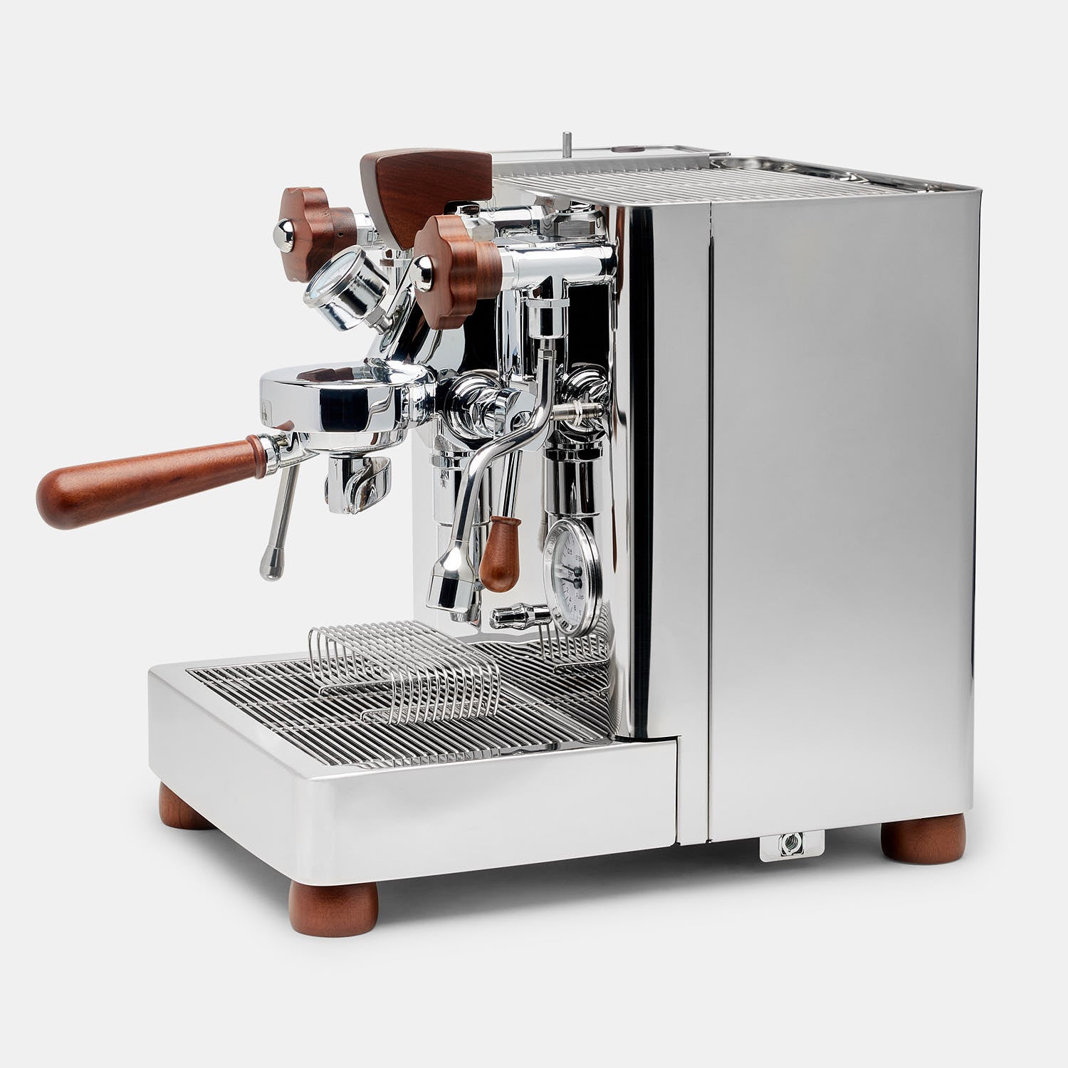 La machine à expresso Bianca de LELIT séduira les amateurs de vintage avec ses finitions, palette, boutons, pieds réglables, poignées et porte-filtres en bois de noyer. Corps de l'appareil, réservoir d'eau, égouttoir et grille métallique sont en acier inoxydable AISI 304 poli pour un résultat durable et un nettoyage facile.