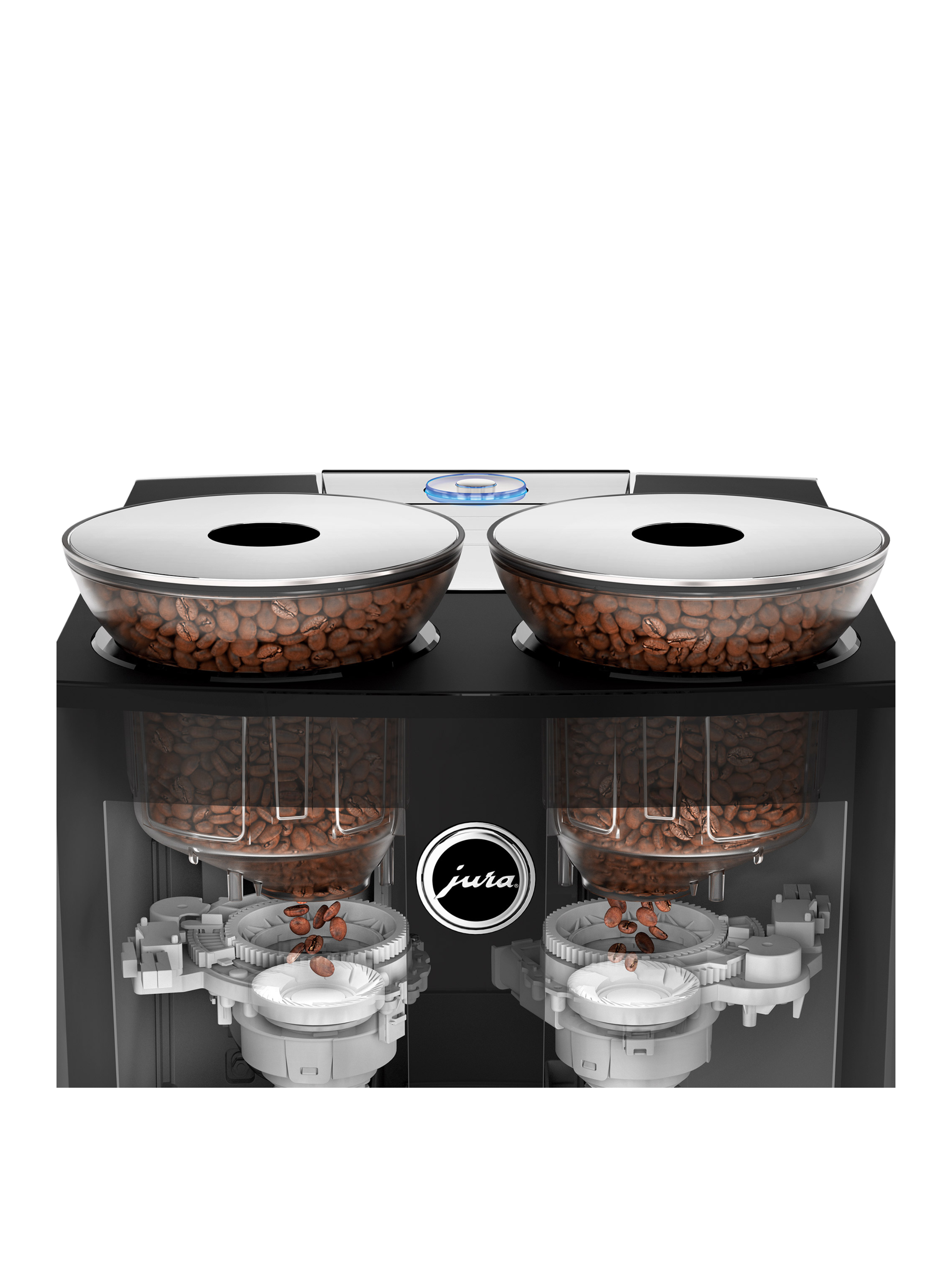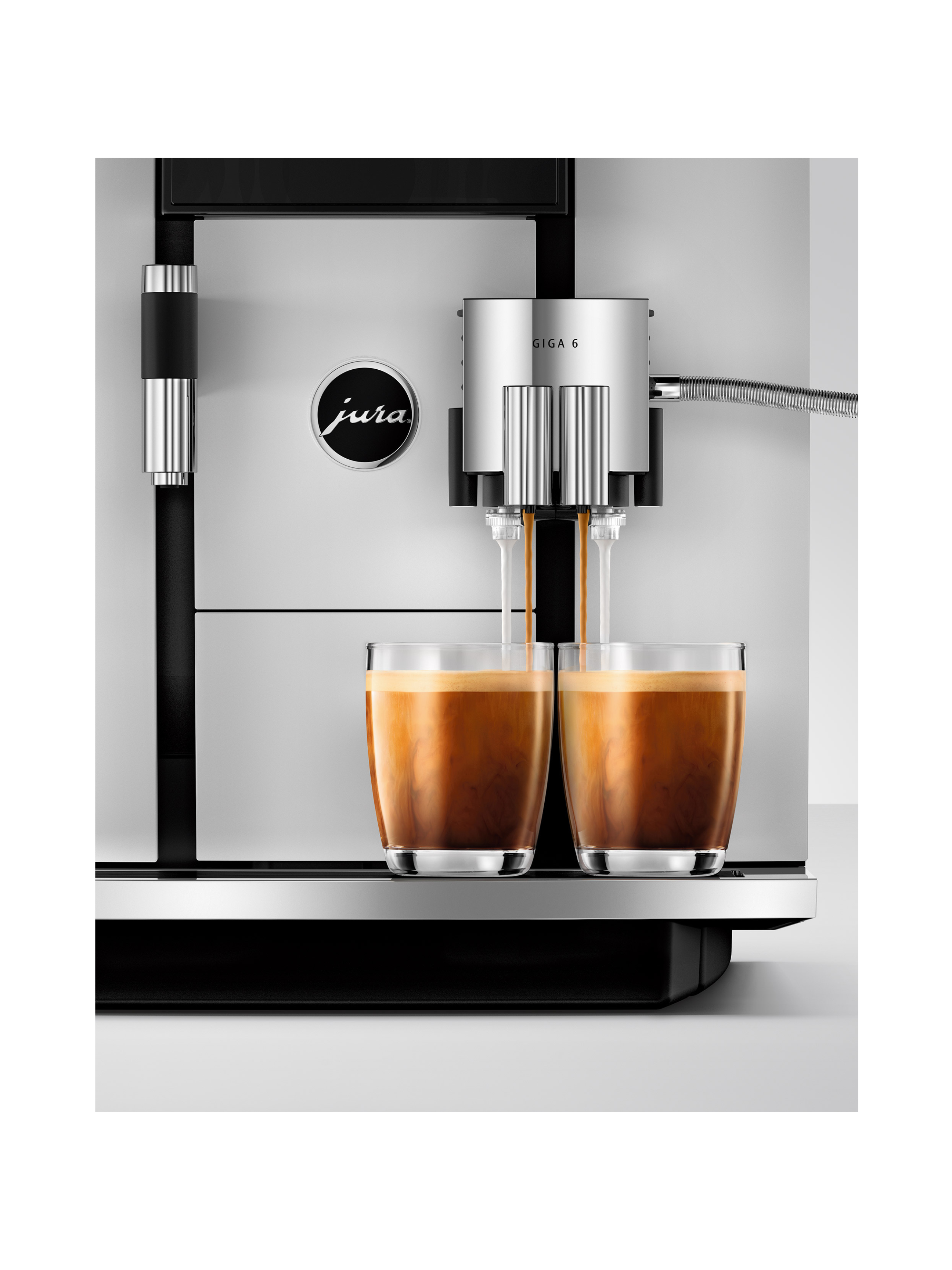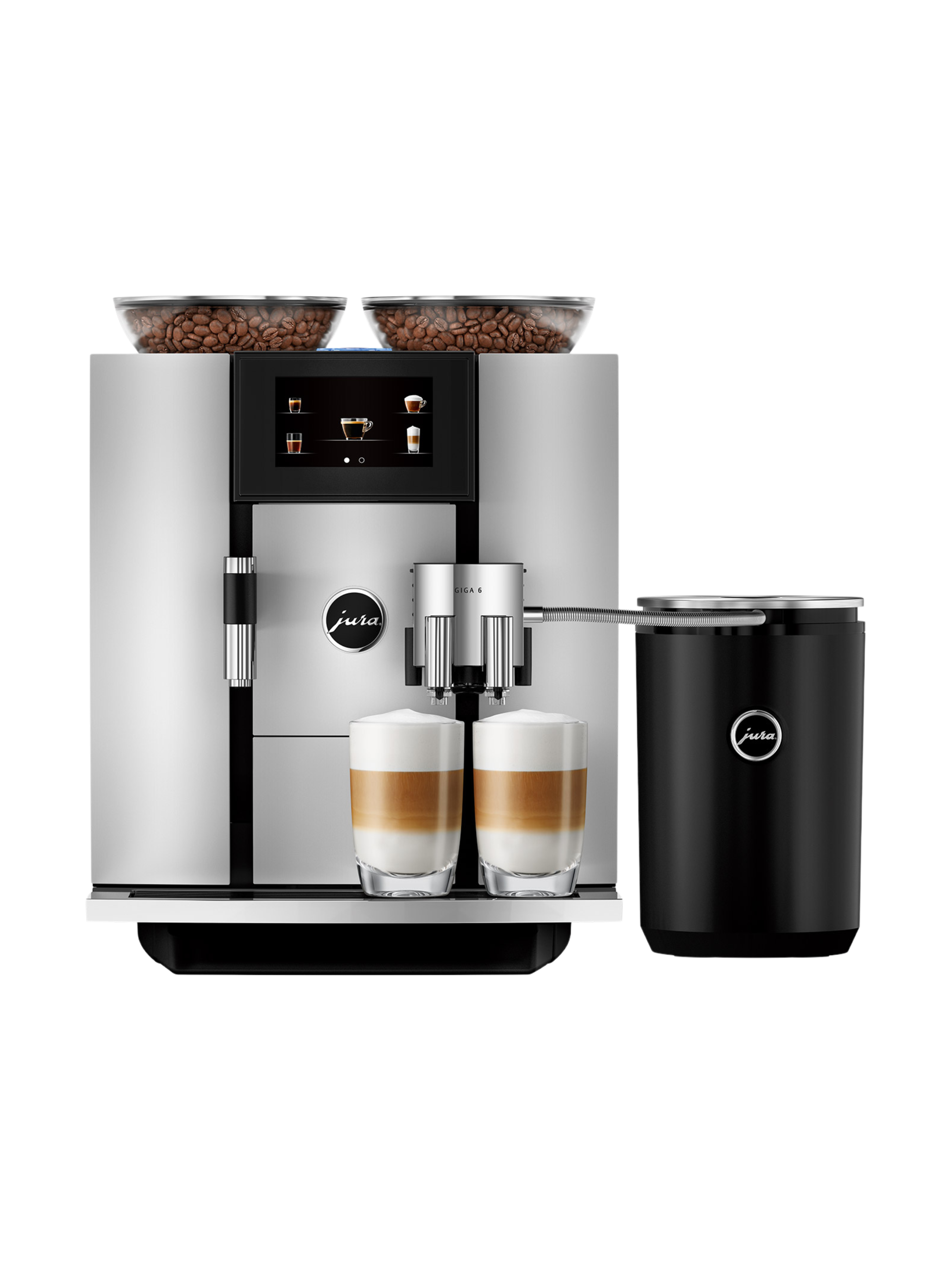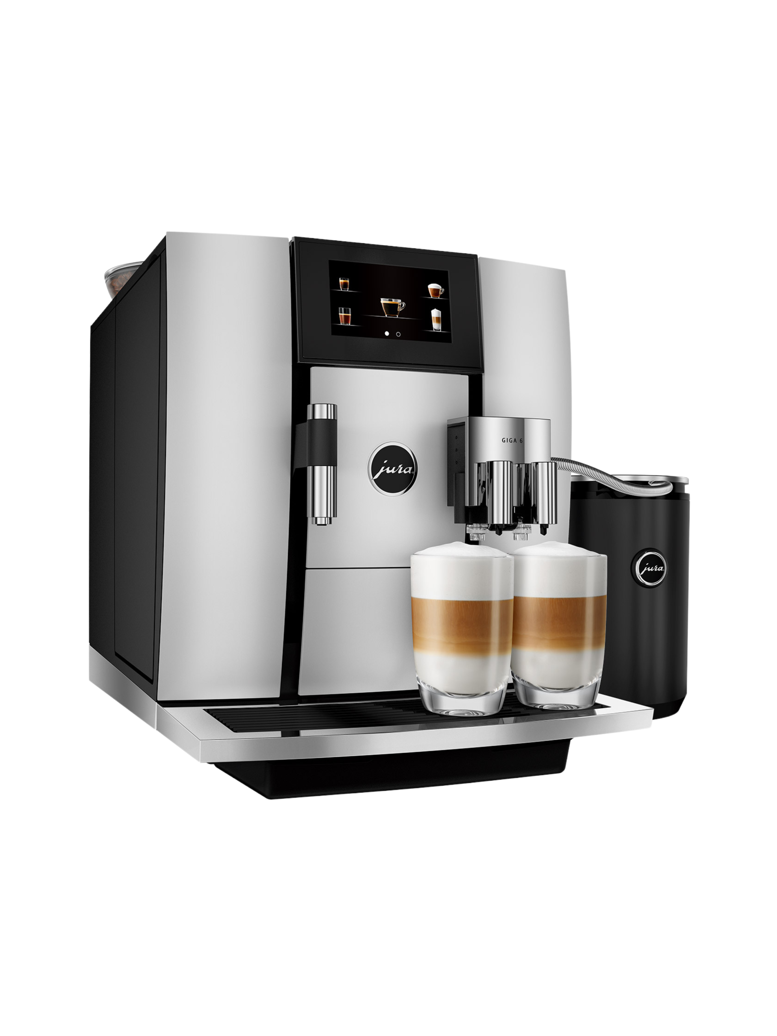 La machine Jura Giga 6 est une machine qui saura répondre aux plus hautes attentes des amateurs de café. Vous pouvez utiliser 2 sortes de grains de café différents, qui seront moulu par deux moulins distincts équipés de meules en céramique. Le système électronique de la Jura Giga 6 est équipé d’un algorithme qui lui permet de s’adapter à vos goûts. La qualité impressionnante de la nouvelle machine à café automatique est soulignée par la partie avant en aluminium de 3 mm d'épaisseur et le couvercle de conservation des arômes substantiel en zinc moulé sous pression chromé. Un algorithme d'auto-apprentissage identifie les préférences personnelles de chaque utilisateur et adapte l'écran de démarrage en conséquence, affichant deux, cinq ou huit spécialités préférées. Les images et les symboles sont explicites, bien pensés et réduits à l'essentiel, vous pouvez donner aux spécialités des noms spécifiques qui peuvent ensuite être affichés ou masqués.