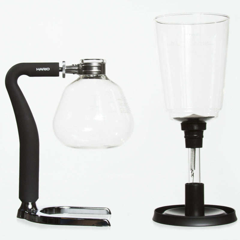 Le Syphon est la quintessence du théâtre de café et peut produire un café époustouflant. Que vous souhaitiez impressionner vos amis ou simplement préparer une délicieuse tasse de café de manière élégante et élaborée, c'est le kit de préparation qu'il vous faut. Le siphon se compose d'un support en métal qui contient une ampoule en verre, une chambre en verre avec un tube sur le fond qui s'insère dans l'ampoule et un filtre en tissu.